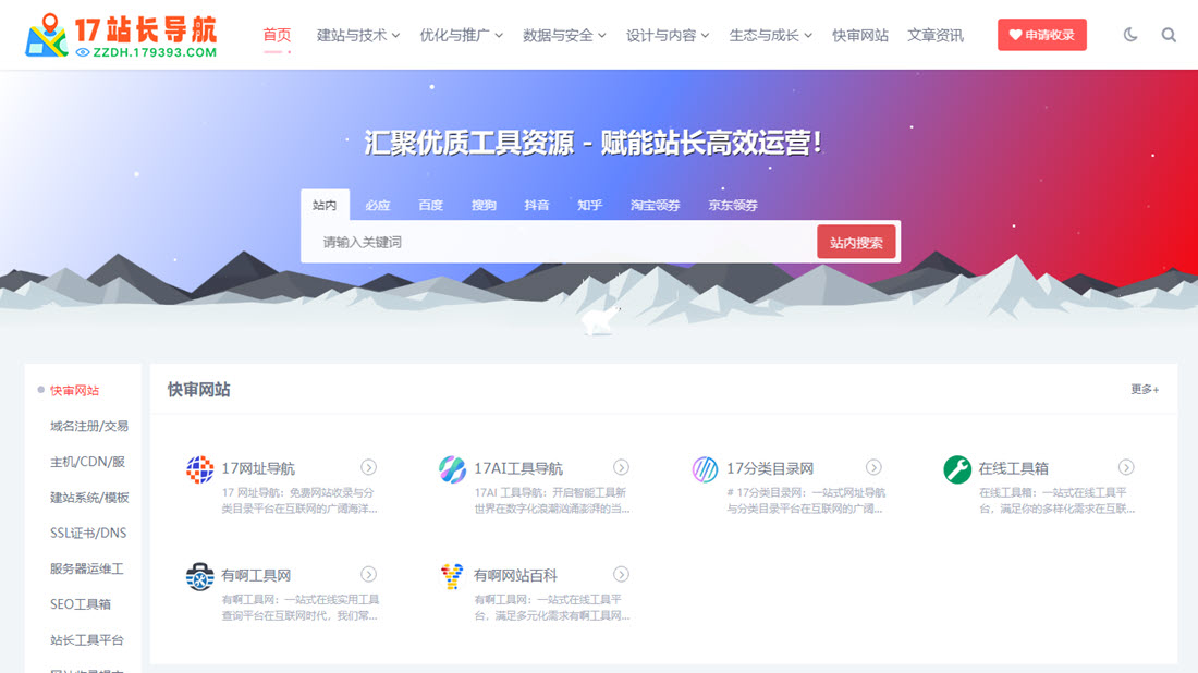 该平台的本质是一个站长工具导航站,专为网站运营者提供全生命周期解决方案。不同于传统综合导航站,其资源聚焦在域名服务、主机运维、安全防护、流量统计等核心领域,形成“工具超市+知识社区”的双重生态。通过整合行业TOP服务商的API接口,用户可完成从域名注册到服务器部署的一站式操作,将传统需要多平台跳转的工作流压缩至单次点击。