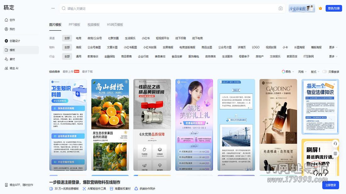 在新媒体传播、电商营销、企业办公等多场景的内容创作中,专业且贴合场景的可视化物料是提升传播效果与工作效率的关键,而稿定设计模板站(www.gaoding.com/templates)作为稿定设计旗下核心模板资源板块,凭借覆盖全场景、风格多元化、适配多平台的设计模板,为不同行业、不同需求的创作者搭建了高效设计的“快捷通道”。