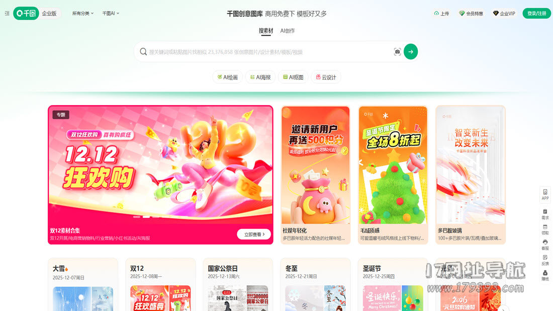 除核心素材资源外,千图网还打造了多元特色服务与活动,进一步降低创意门槛并保障商用合规性: