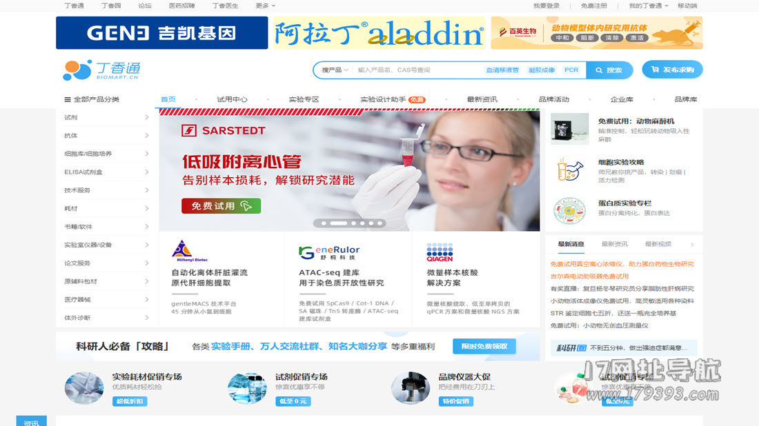 在生命科学研究、生物制药、精准医疗等领域,科研人员对优质实验用品、专业技术服务与前沿行业资讯的需求高度集中。丁香通(官网地址:biomart.cn)作为生物医疗领域整合营销专家,以“服务科研全流程”为核心定位,构建了涵盖科研采购、技术服务、资讯分享、互动交流的综合生态,累计服务230万+用户,凭借4600+天品牌营销经验,成为科研人不可或缺的实用工具,其专业价值与全面服务值得导航站重点推荐。