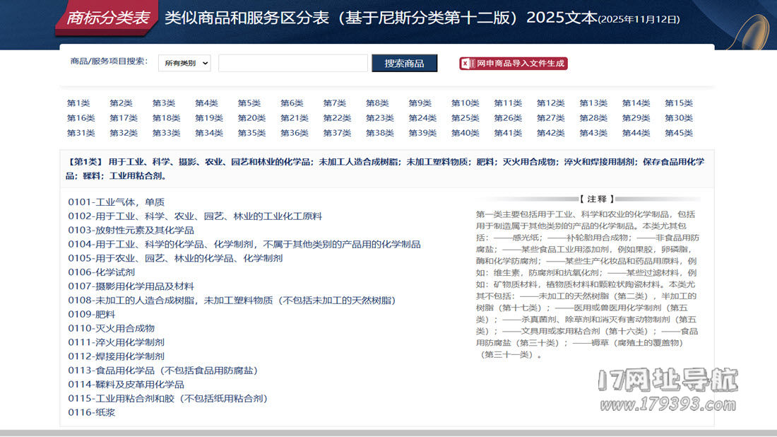 该网站的核心价值聚焦于“提供标准化、精准化的商标分类依据”,依托国际通用的尼斯分类体系,结合2025年最新文本修订,构建覆盖全品类商品与服务的分类查询体系。平台不仅是单纯的分类列表展示,更通过详细注释明确各类别边界,帮助用户规避分类错误导致的商标注册驳回、侵权纠纷等风险,成为连接商标申请、使用与合规管理的核心参考枢纽,适配专业机构与普通用户的多层次需求。