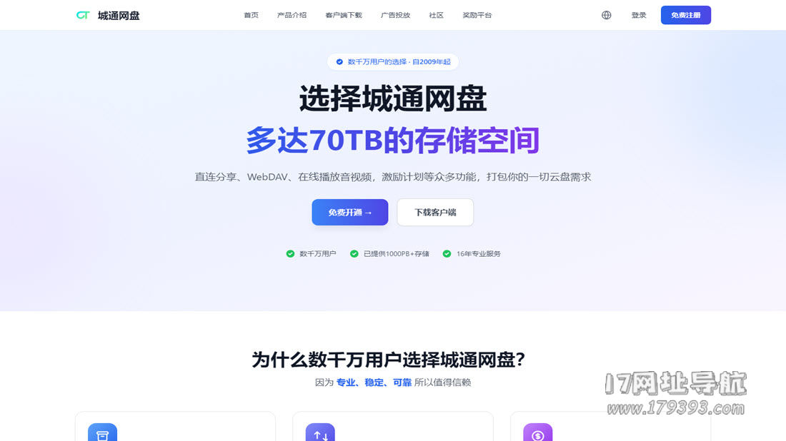 自2009年上线以来,Ctfile已拥有16年的服务历程,凭借专业稳定的性能、超大的存储容量和丰富的实用功能,收获了数千万用户的信赖,同时为用户提供了1000PB+的存储资源,是兼顾个人存储、文件分享与收益变现的优质云存储平台,其核心价值可精准匹配多类用户的云端数据管理需求。
