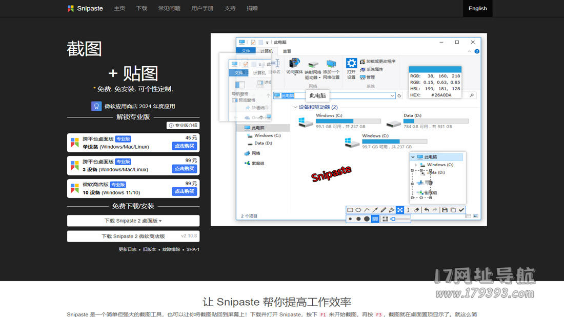 Snipaste 以“简单操作实现复杂功能”为核心,将截图、贴图、标注三大需求融为一体,既解决了传统工具的功能割裂问题,又凭借免费、安全、无广告的优势,成为无门槛的高效办公工具。对于导航站用户而言,这款工具精准覆盖了电脑办公人群的核心需求,实用性强、口碑优质,是值得重点推荐的“必备工具类”站点,无论新手还是专业用户,都能从中获得显著的效率提升。