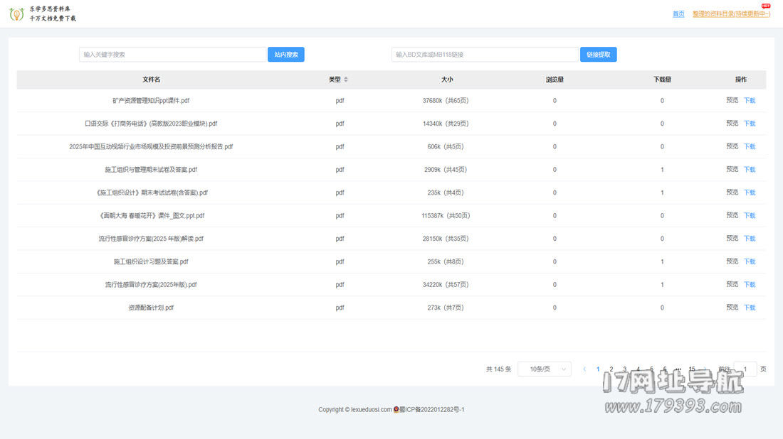 进入网站,其界面设计极为简洁,甚至可以说有些原始。首页即是一个清晰的文档列表,没有复杂的分类导航或炫目的广告。每份文档都列出了文件名、类型、大小、浏览量、下载量和下载操作按钮,所有功能一目了然。这种“去繁就简”的设计降低了使用门槛,用户的核心目标——查找和下载文档——被放在首位。