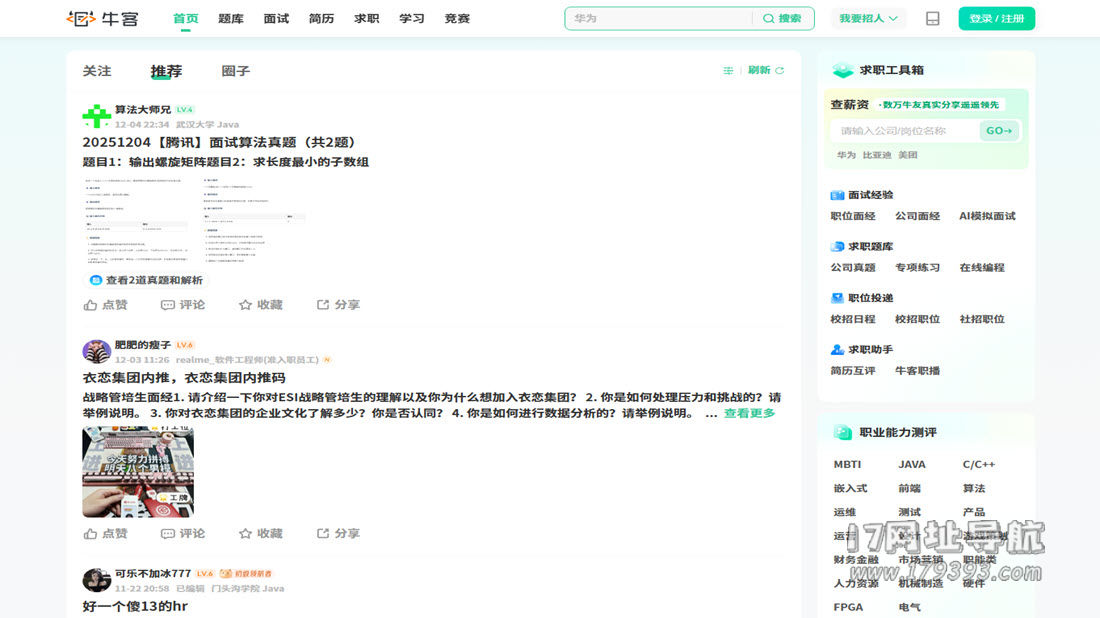 对导航站用户:牛客网的核心价值在于“求职招聘+社区互动”的双重属性,既提供工具型的岗位对接与资源查询服务,又具备社区的互动性与粘性,覆盖求职全链路需求,是求职群体与企业招聘的重要流量入口。