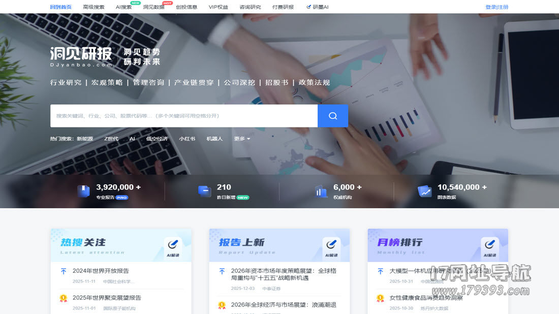 在信息驱动决策的时代,获取全面、专业、及时的行业研究资源成为投资者、企业管理者、研究者及职场人的核心诉求。洞见研报(djyanbao.com)以“洞见趋势、研判未来”为核心使命,打造了覆盖全行业、汇聚权威机构、整合多元数据的一站式研报服务平台,凭借超389万份专业报告、5900余家权威机构合作、1048万余条图表数据的庞大资源体量,成为连接信息与价值的重要桥梁,为各类决策场景提供精准支撑。