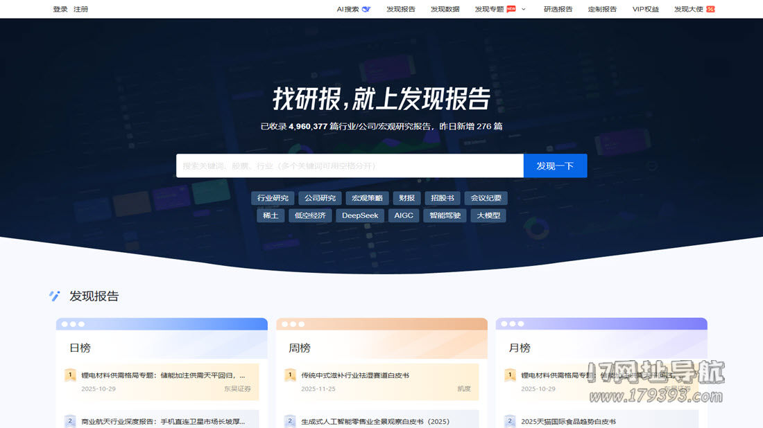 对于导航站用户而言,发现报告的核心价值在于“降本增效、精准赋能”:无需跨平台检索,即可一站式获取全球权威机构的研究成果,避免信息碎片化;AI智能总结与热点分类功能,大幅缩短信息筛选与阅读时间,提升决策效率;覆盖全行业的深度报告与实时热点洞察,帮助用户精准把握市场趋势与行业机遇,无论是投资决策、企业战略规划,还是职场认知提升,都能找到有力支撑。