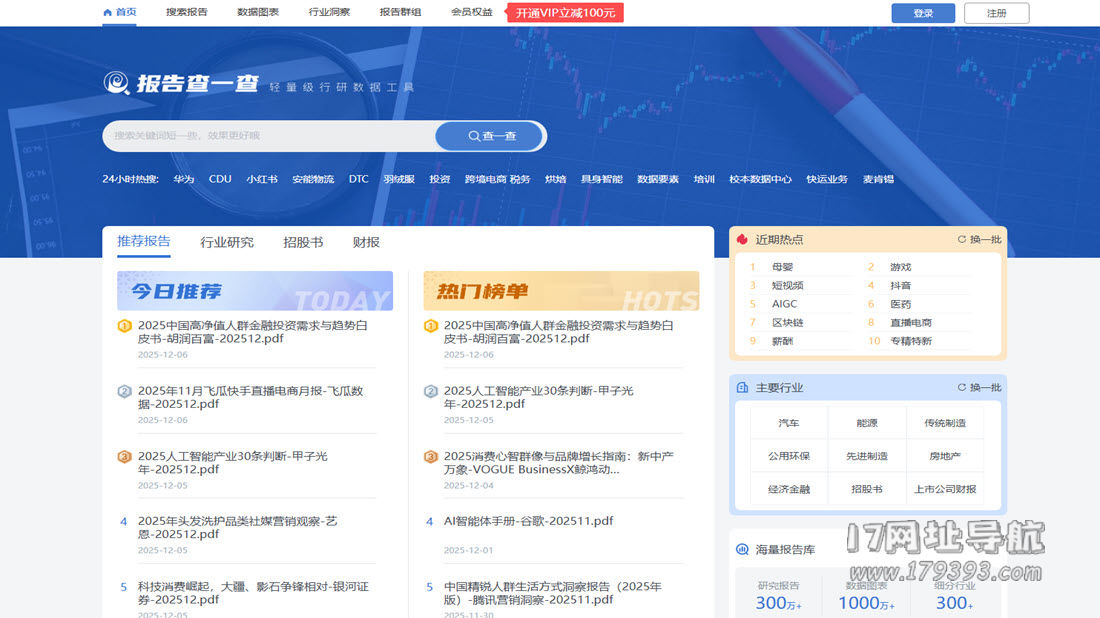 在信息爆炸的时代,精准、及时的行业研究报告是投资者、企业决策者、市场研究员的核心需求。报告查一查(report.seedsufe.com)作为聚焦行业研究的专业平台,以“聚合权威报告、赋能深度决策”为核心定位,整合海量优质研报资源与数据工具,成为覆盖多领域的行研与投资辅助利器,帮助用户快速把握行业趋势、挖掘核心价值。