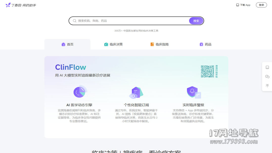 在临床诊疗场景中,医生、药师等专业人员对权威信息的精准获取、实时更新需求极为迫切——一份滞后的指南、模糊的用药说明,都可能影响诊疗安全性与规范性。drugs.dxy.cn 作为丁香园旗下聚焦医疗专业领域的核心工具平台,以“权威资源整合+AI 技术赋能”为核心,打造了覆盖疾病诊疗、临床指南、药品查询的一站式临床决策支持系统,已为 300 多万专业用户提供服务,成为医、药从业者日常工作中不可或缺的“安全护航工具”。