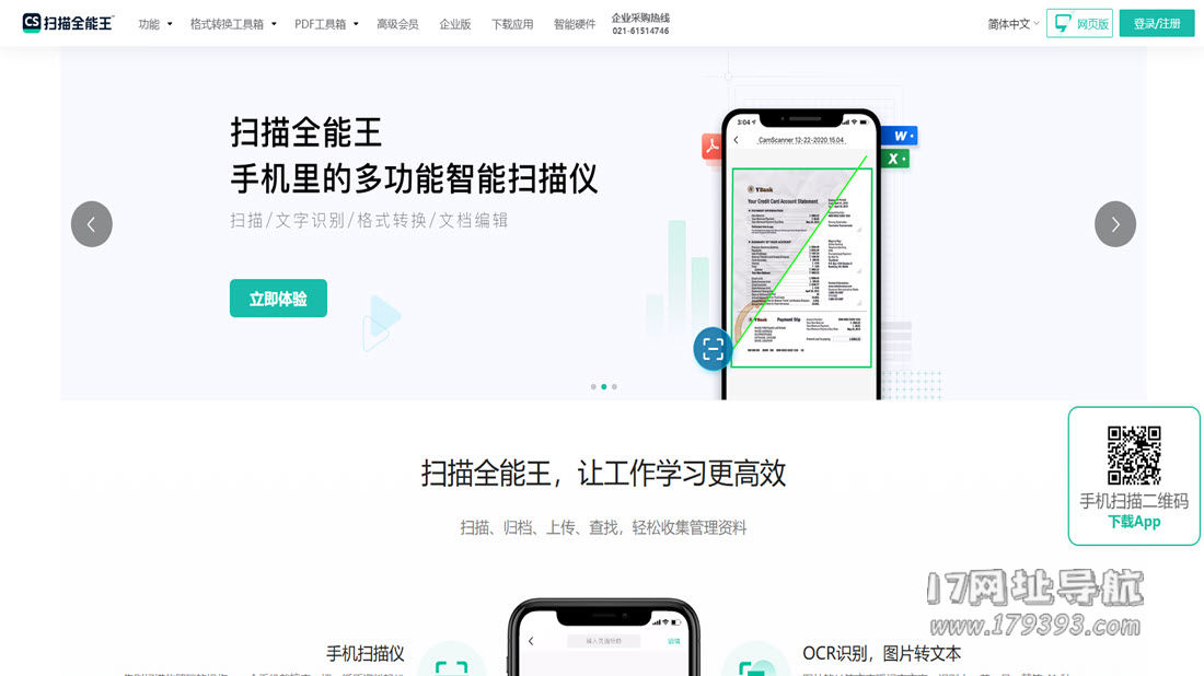 扫描全能王由上海合合信息科技于2011年推出,面向全球用户提供“拍摄→识别→管理→分享”一站式文档解决方案。官方数据:全球下载量超7亿,月活近2亿,覆盖全球200+国家与地区,常年位列App Store与Google Play商务榜前十。